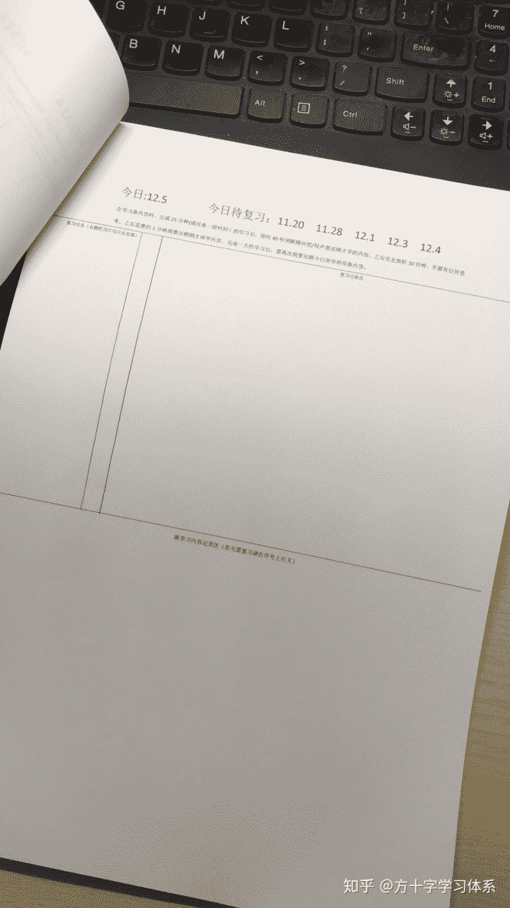 面向采取艾宾浩斯曲线进行复习的同学,我这里有一个很好的工具,是一种基于记忆曲线的学习日志(专利号201910263892.7,盗版必究),操作便捷度,用途,适用范围显著优于传统的表格法。有兴趣的同学可以加入Q方十字学习方法交流群:933781493,在群文件中下载电子版,自行打印装订。只允许自用,不得用于其它商业用途。详细使用方法请移步:学习日志说明书。