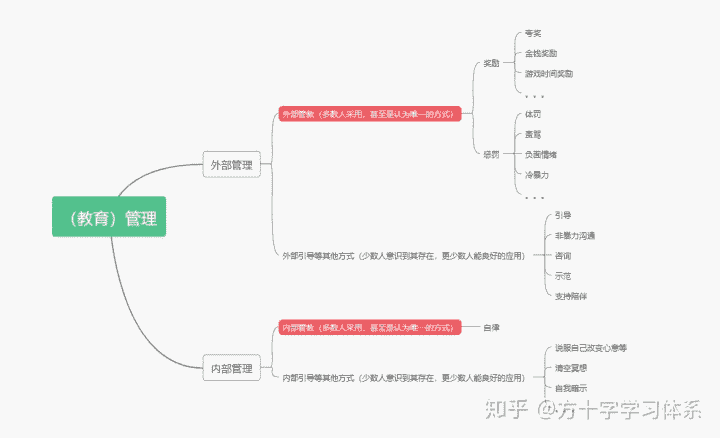 其实,除了绝大多数人所采用的管教管理思路,还有很多其他的管理思路,比如引导,咨询,沟通,支持,陪伴等。但这些思路对智能和耐心程度的要求较高,需要较为成熟的心灵状态,很多人难以理解,应用,因此很少有人采纳这些思路。除外部管教之外的管理思路,我将在以后的文章中逐渐加以收集,解读。