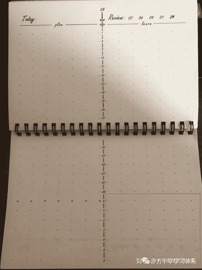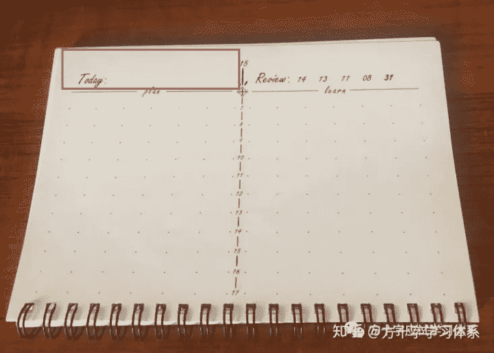注意,日期需要连续记录,不得中断。即使某几天没有学习,学习记录为空,也需要将日期记录在对应页中。否则会造成后续的复习出现混乱。