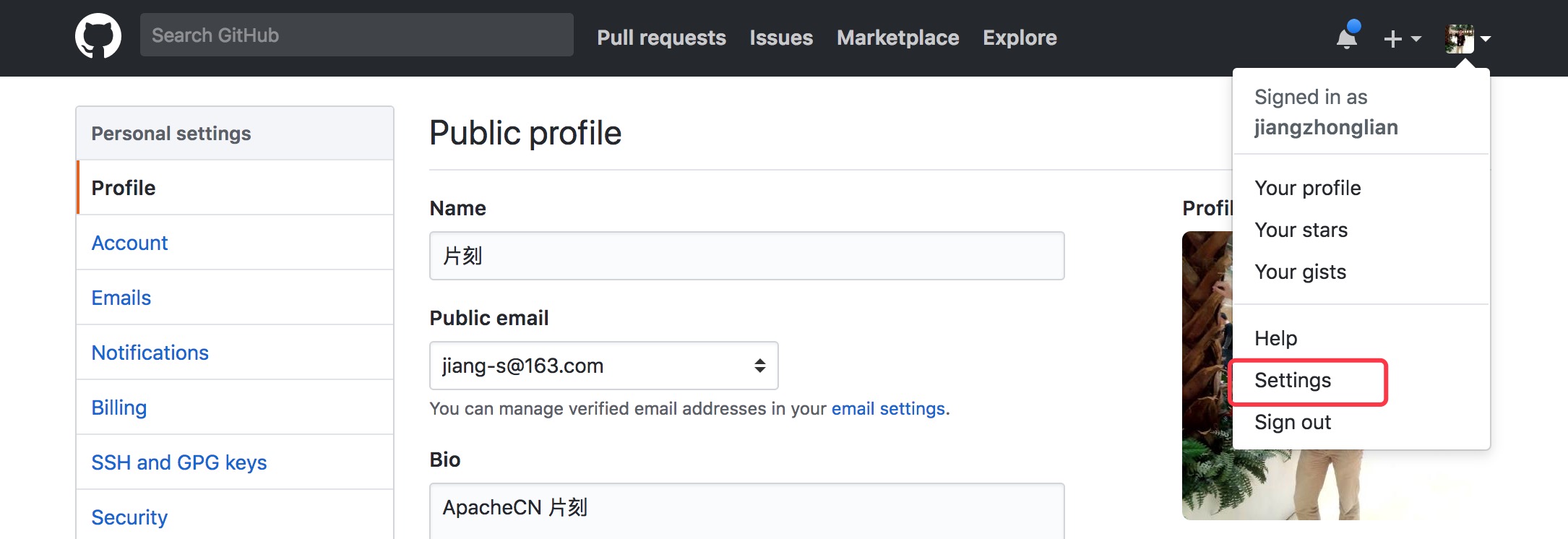 2.点击 Settings, 添加ssh key