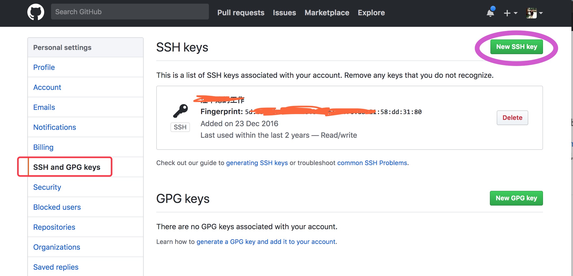3.点击 New SSH key