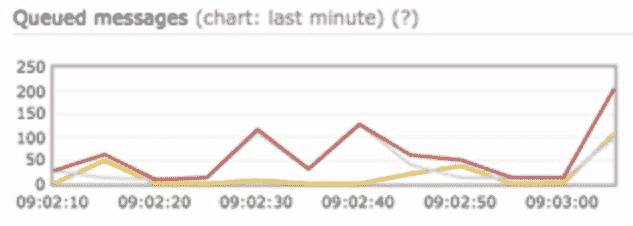 要监控的一个关键指标是排队通知的总数。如果数量很大,则工作线程处理通知事件的速度不够快。为了避免通知传递的延迟,需要更多的工人。图 10-12 显示了一个待处理的排队消息的例子。